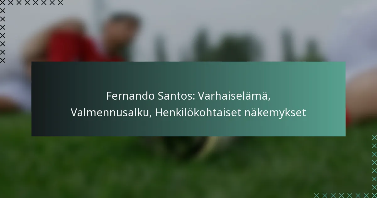 Fernando Santos, tunnettu jalkapallovalmentaja, syntyi Portugalissa ja hänellä on rikas tausta, joka muovasi hänen uraansa. Hänen varhaiselämäänsä vaikuttivat perhesuku, koulutus ja kokemukset nuorten jalkapallosta, jotka kaikki myötävaikuttivat hänen kehitykseensä valmentajana.