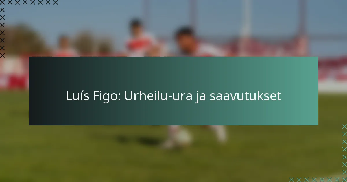 Luís Figon urakehitys on merkitty merkittävillä saavutuksilla ja siirroilla huippu-Euroopan seurojen ja Portugalin maajoukkueen välillä. Hänet tunnetaan taitavasta pelistään laitahyökkääjänä ja keskeisestä roolistaan eri kilpailuissa, jättäen pysyvän perinnön jalkapalloon.