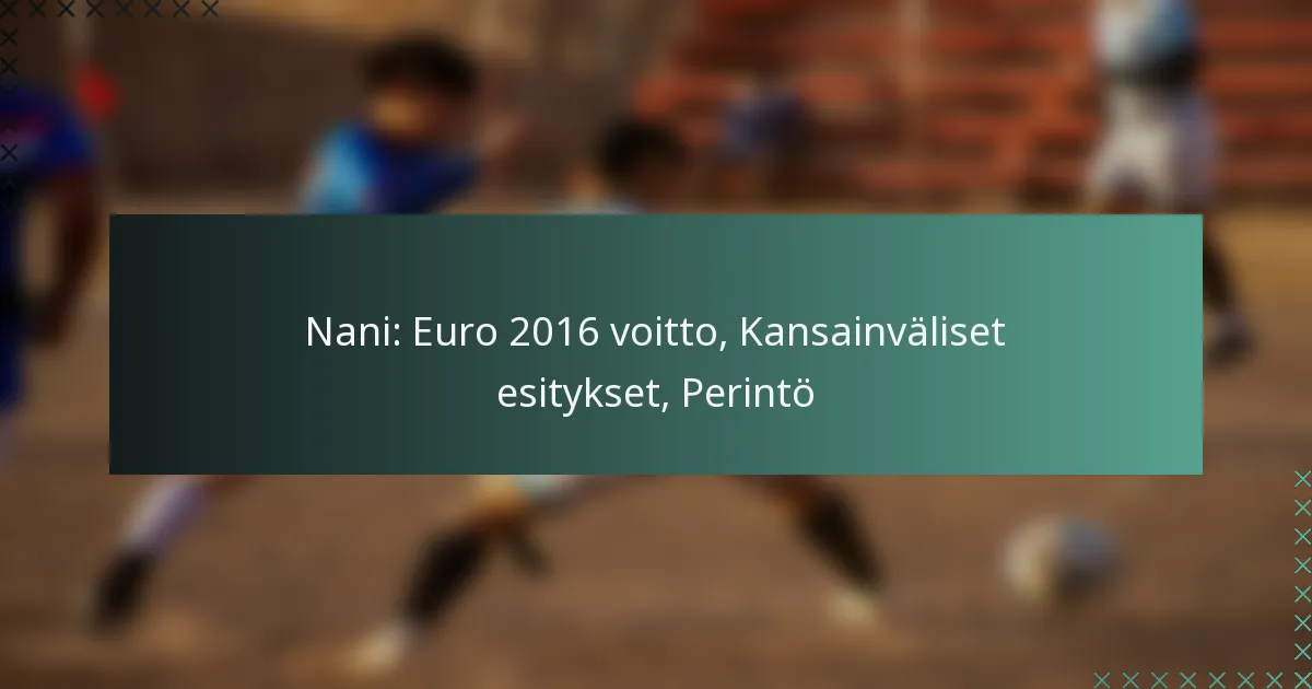 Nani oli keskeinen hahmo Portugalin voitokkaassa Euro 2016 -kampanjassa, tuoden tärkeitä maaleja ja syöttöjä, jotka korostivat hänen arvoaan maajoukkueelle. Hänen vaikuttava kansainvälinen uransa on määritelty merkittävillä saavutuksilla ja virstanpylväillä, jotka vahvistavat hänen perintöään vaikutusvaltaisena pelaajana jalkapallohistoriassa.